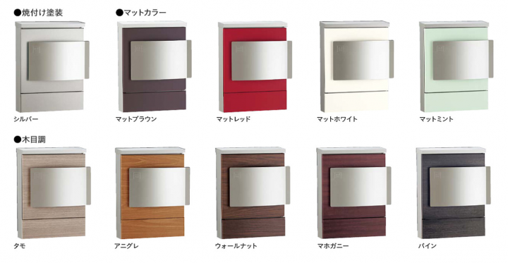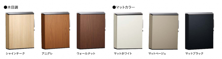 「アキュート」 こちらは壁付けタイプで横から投函し、前から取り出す、少し珍しい形の商品です。