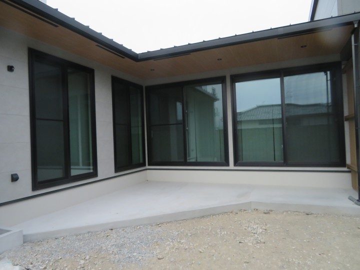 リビング前は同じく樹脂の目隠しフェンスを設けましたので、ご家族で気兼ねなく