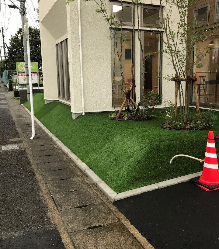先日、人工芝を施工した完成現場を見学させていただきましたので写真でご紹介いたします。
