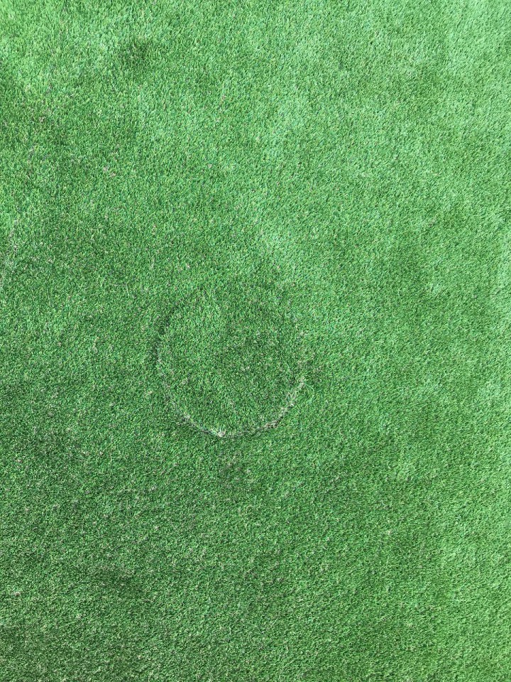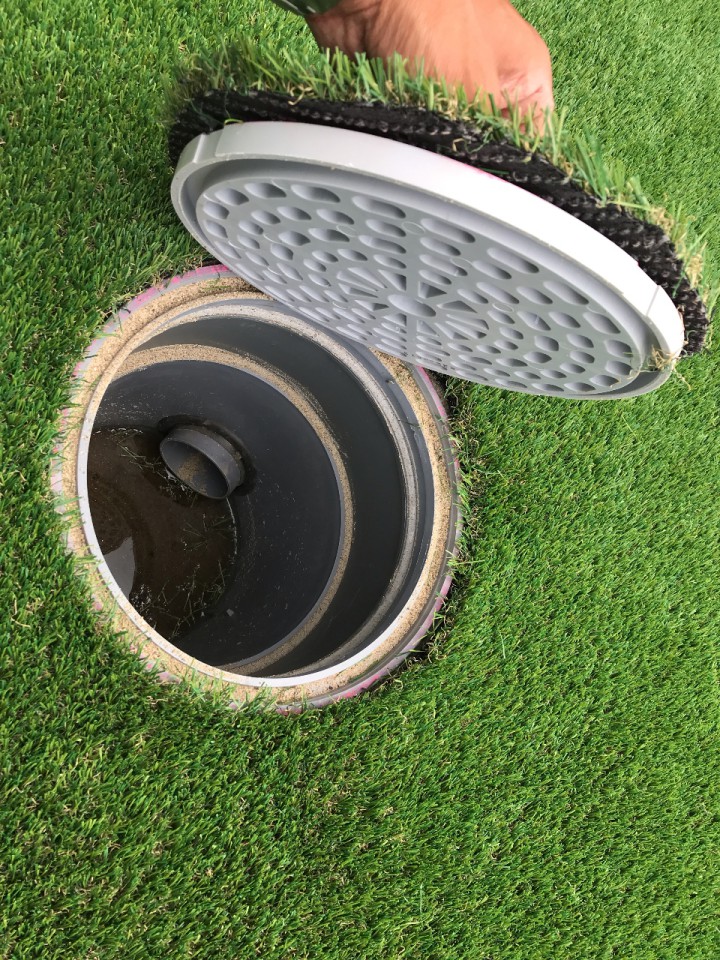 排水桝のフタにも人工芝を切って、貼り付けました。
