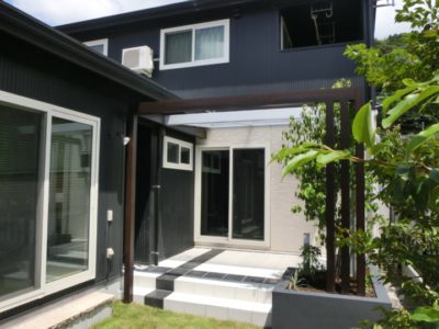 こちらの写真は外でお茶をしたり、ご飯を楽しまれたいとのご要望で設置させていただいたものです。