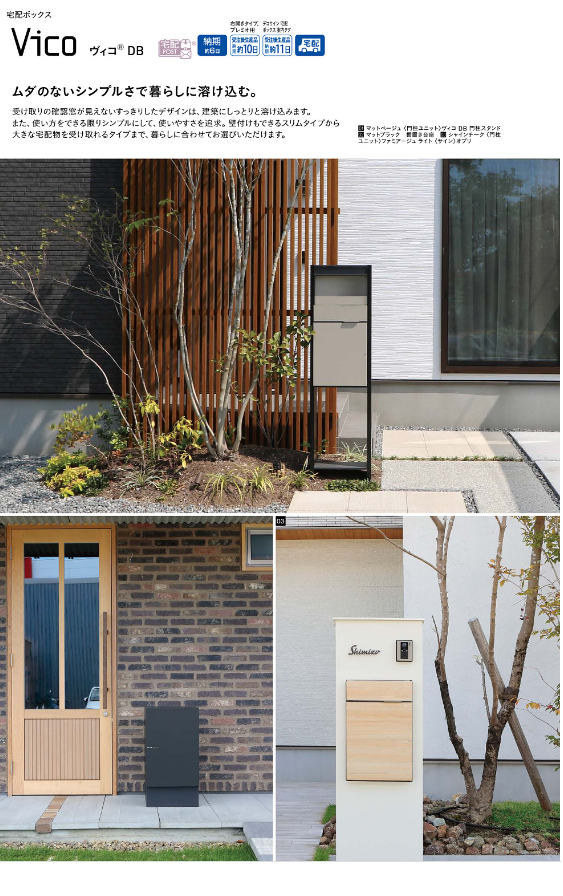 次にご紹介するのは、ユニソン 『ヴィコ』です。こちらもデザインはシンプルですが木調色がきれいで門壁に埋め込むとアクセントとしてオシャレに納まります。