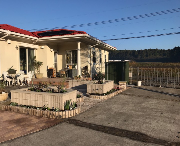 ご要望頂いた内容は、テラス際の芝の手入れが大変でそのスペースをおしゃれな花壇にしたいとの事。