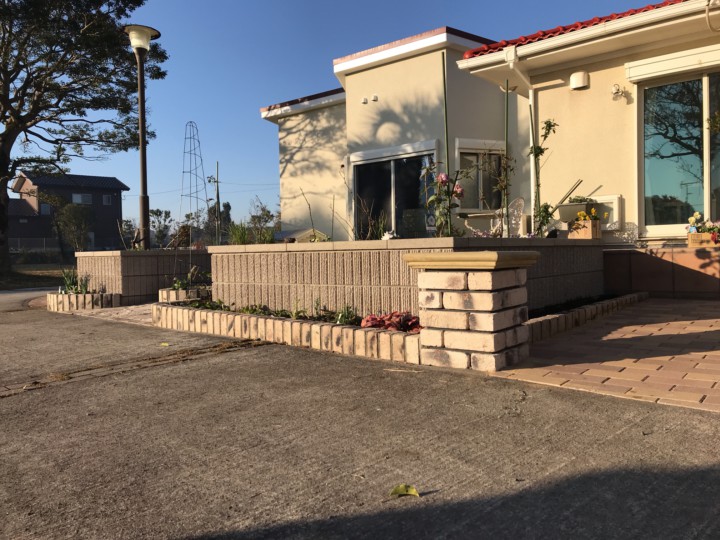 その周りもレンガでお花が植えられるスペースを確保しました。
