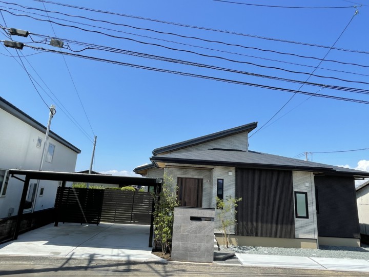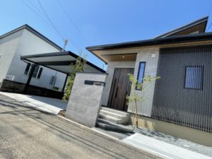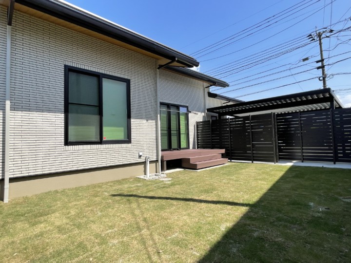 フェンスの位置も一工夫し正面からお庭が見えないようにしております。