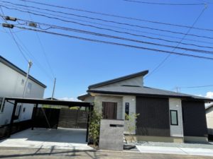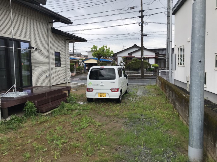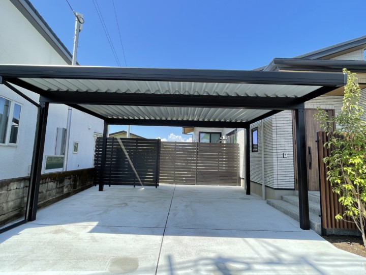 折板カーポートに目隠しフェンスです。高さは2mありますのでしっかり目隠しできますね。