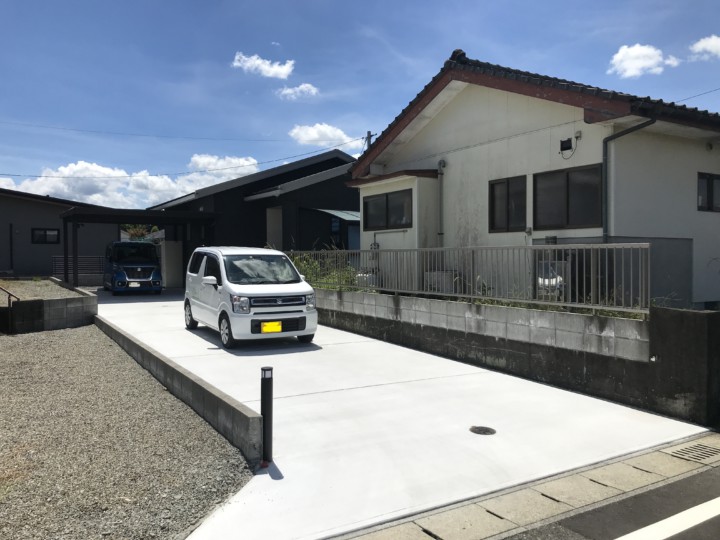 車の出入りがしやすいよう、道路から車庫までをコンクリートに。