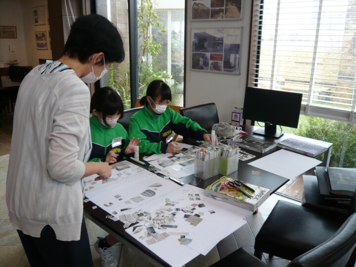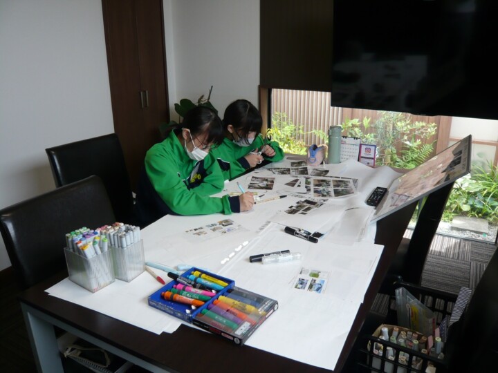 前回の職場体験のレポートを参考にしながら楽しそうに作ってました。