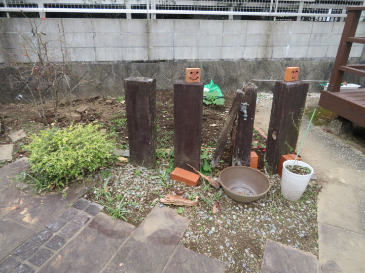 立水柱が以前は低すぎて使いにくかったので使いやすい位置に高く施工しました