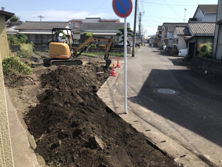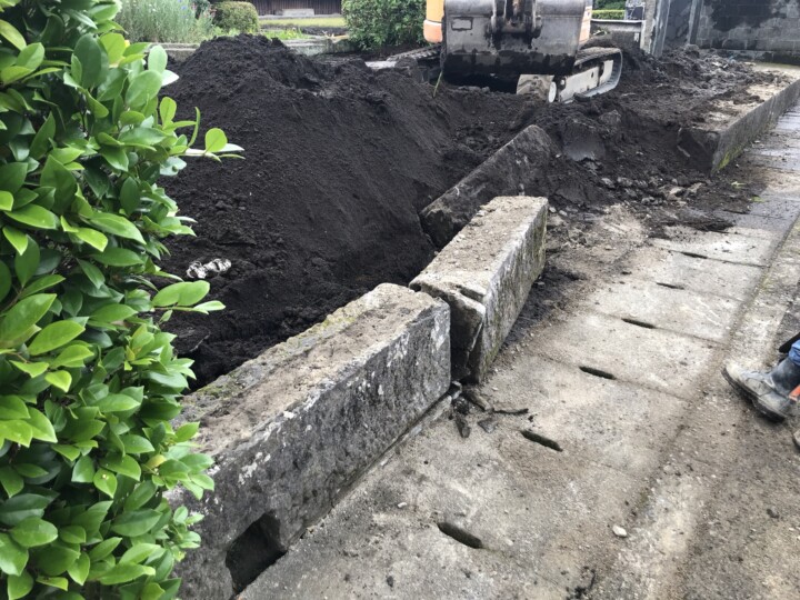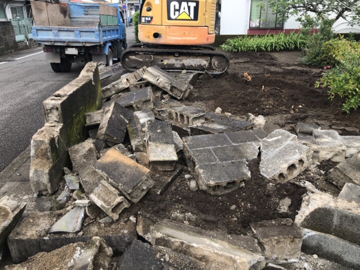 外周をぐるりと、高さのあるブロックで囲まれた現場でした。