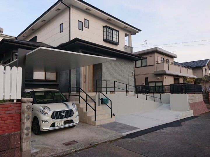新しく駐車場スペースを確保しスロープを計画。将来の不安もなくなりました。