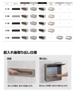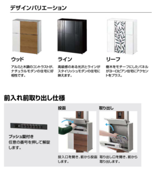 前出し・後ろ出しが選べるものや宅配ボックスと一体型のポストもあります。
