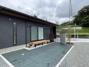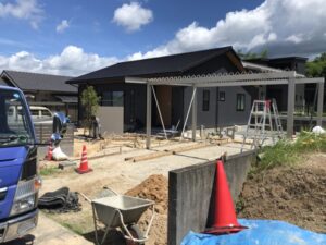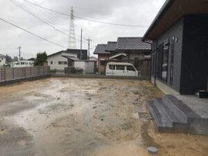 コンクリート打設前にカーポート、植栽工事も完了です。