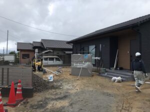 玄関周りと駐車スペースをご提案して工事スタートです。