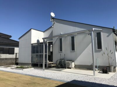 もともとついていたテラス屋根にポリカの正面パネルを付けて、目隠し♪