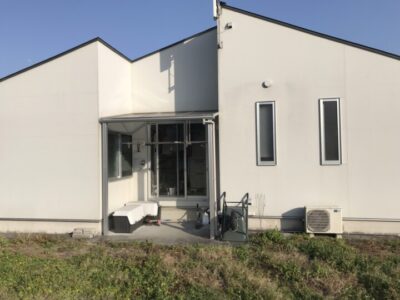 もう1つ付けたテラス屋根の下には、ベンチを置いて、息子とのキャッチボールの