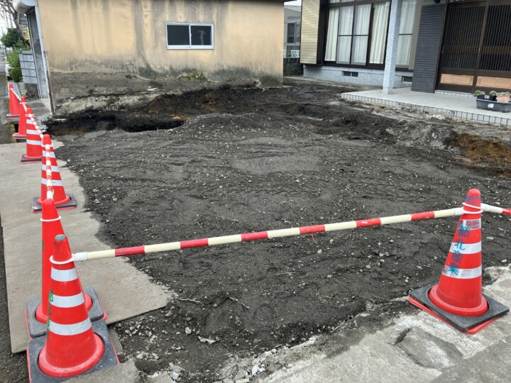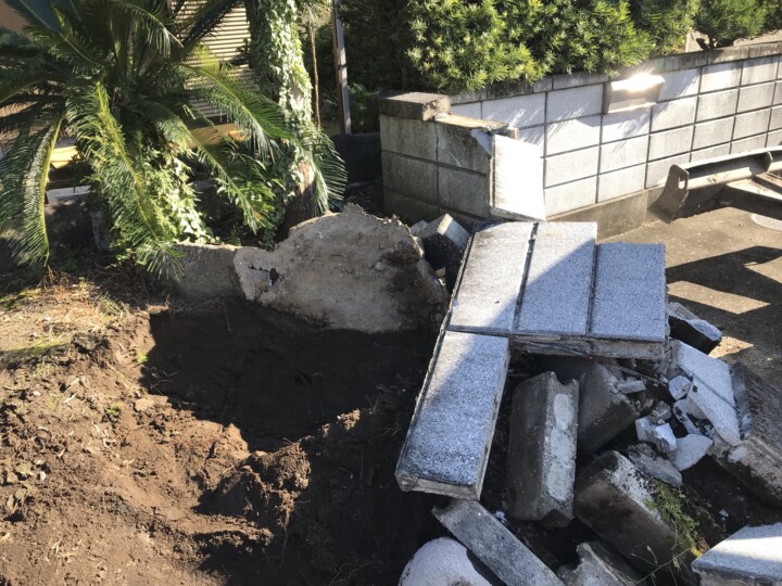 既存のブロックや庭木・庭石など全て解体撤去していったん更地へ。