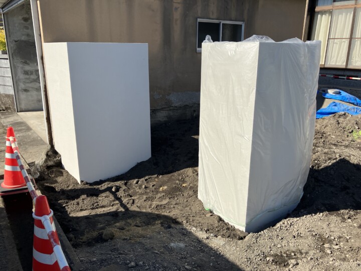 そのあとに、当社オリジナルのプレキャスト門壁を設置。