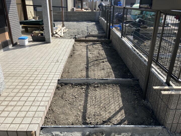最後に駐車部のコンクリート打設作業を行い完了です。