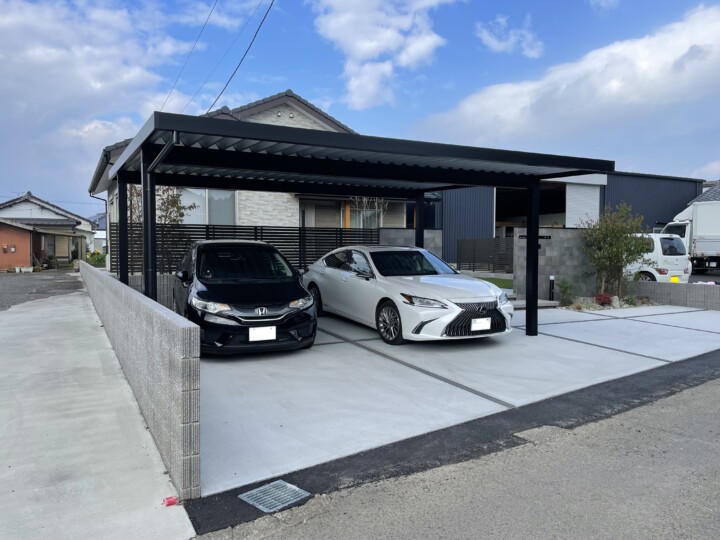 いくつかご要望をお聞きして、カーポート、200V電源・照明、道路の排水処理などを