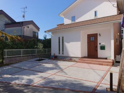 さて、今回は駐車場部分が砂利敷きになっており全面道路の勾配もきつくお車の出し入れの際に砂利が流れ出たりしてどうにかしたいというご相談でした。