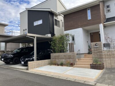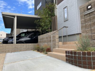 さて、今回は玄関前のちょっとしたスペースを駐車しやすいようにされたいとのご要望でした。
