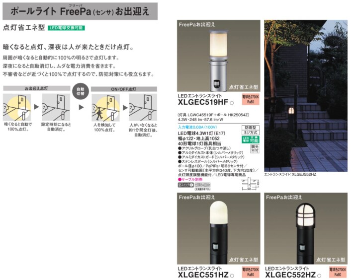 点灯の仕方も 常時点灯、タイマー付き、センター付き