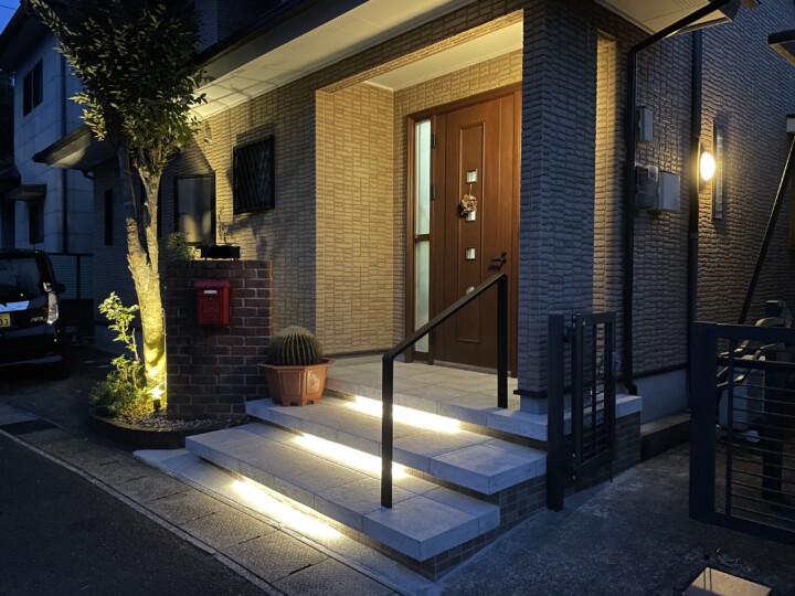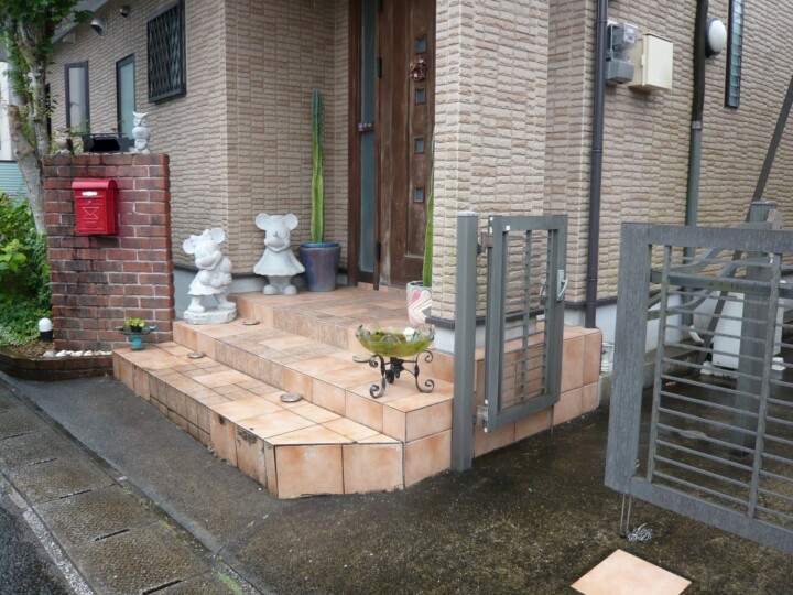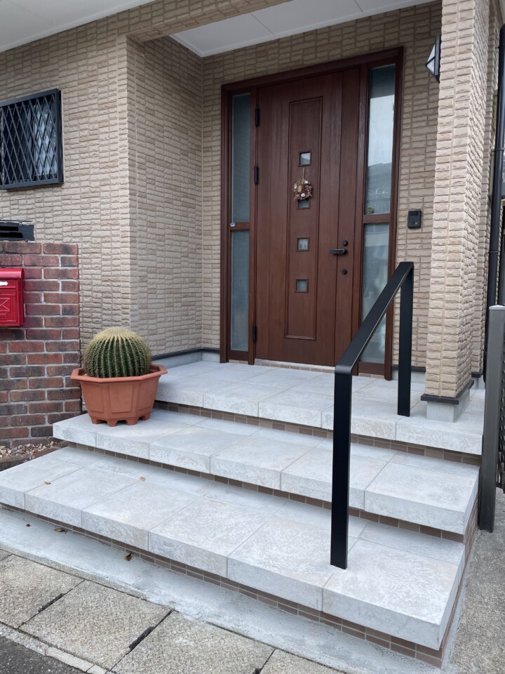 手すりを設け、木製の玄関ドアもキレイに塗装しました。