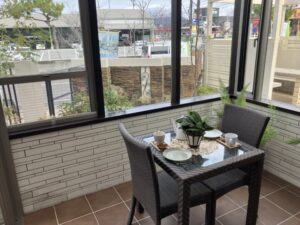 居心地の良いガーデンリビングとして天気の良い日にコーヒーをひと口。