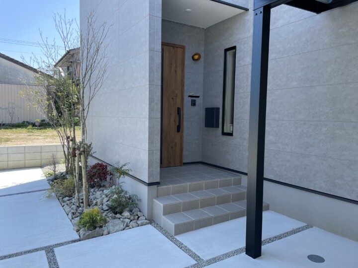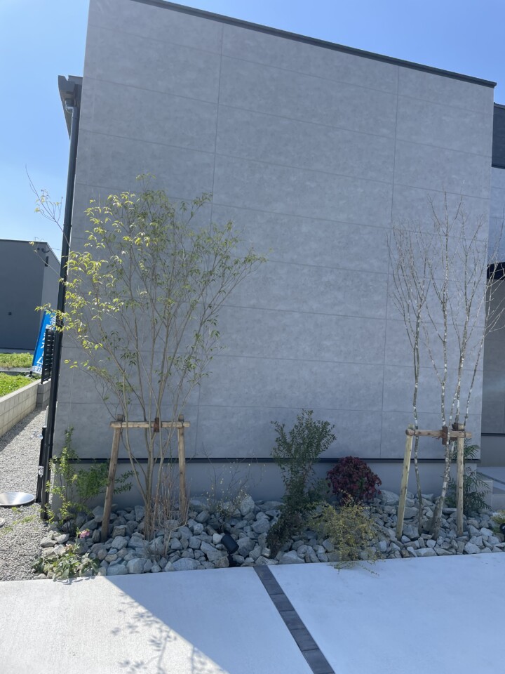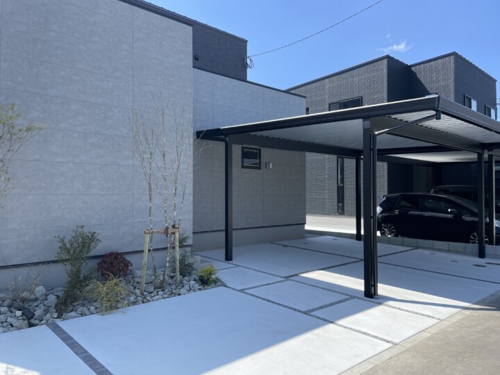 駐車場のコンクリートとカーポート、植栽がご希望でした。