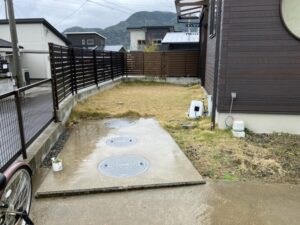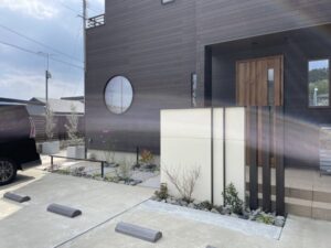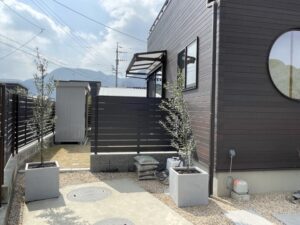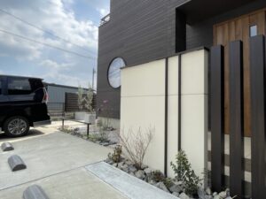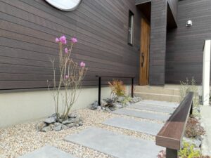 アプローチはTOYOのニュートペイブ、足元はリクシルのフェンスALです。