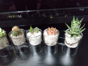 ガラスの小物が大好きなので、植えるポットもガラス製でそろえてみたり☆