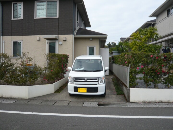 駐車場から勝手口に出来るだけ濡れないように屋根を加工し、幅もゆったりと車を停める事ができます。