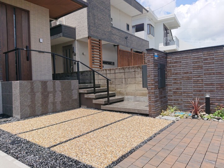 玄関が駐車場からだいぶ高く設定されていましたのでこの高低差を活かして階段を追加し張り出し階段に。