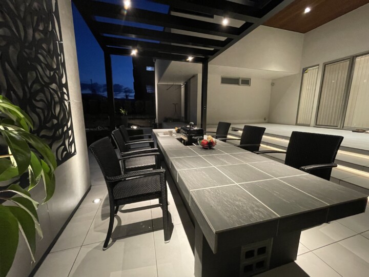 バーベキューをよくされるとの事で広いテーブルを備え付け、コンロ用に中央をくり抜いております。