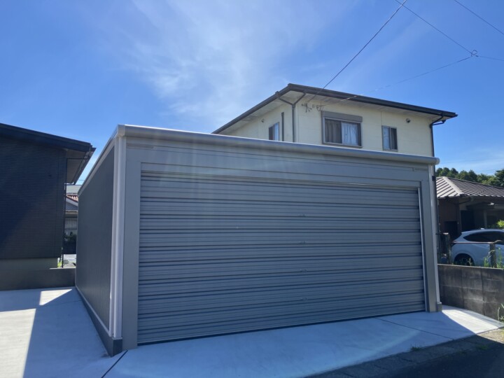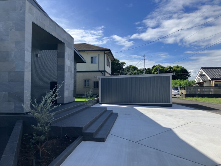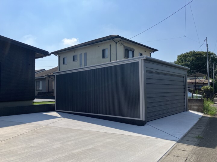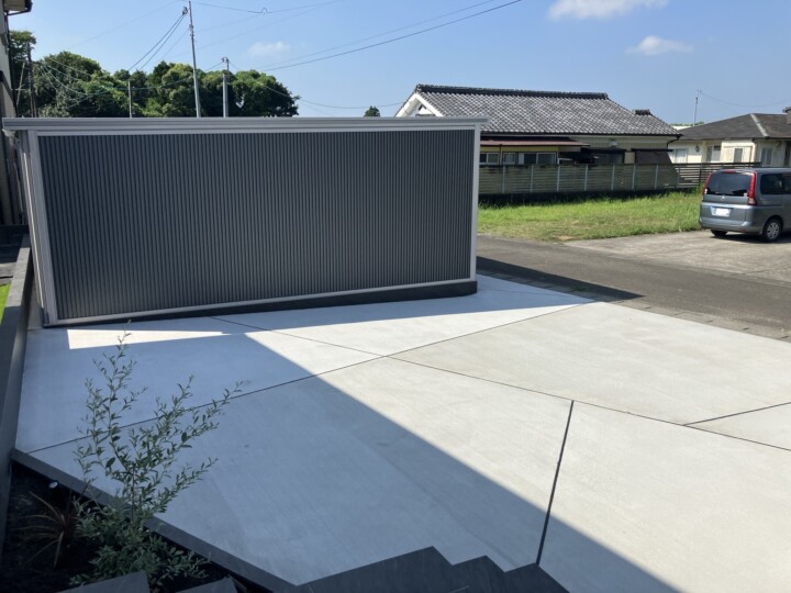 車庫には電動オーバースライディングドアタイプ ヨドガレージを採用。