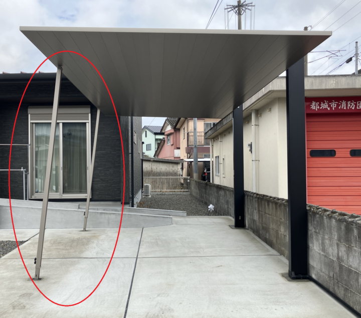 片足のカーポート屋根の場合、サポート柱の取付けをお願い致します。