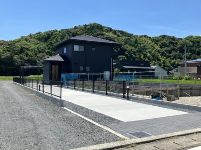 旗竿地の外構工事でした。道路から駐車場まで続くコンクリートは