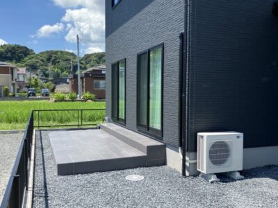 タイルテラスの形状や高さはN様にもご要望を出していただき、1段目を広くすることで、