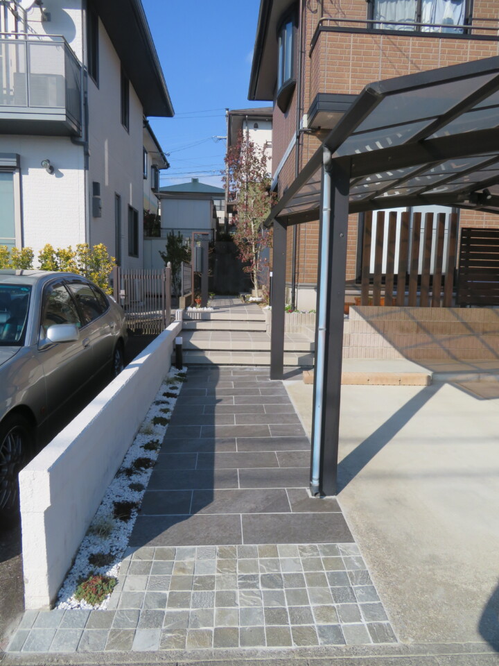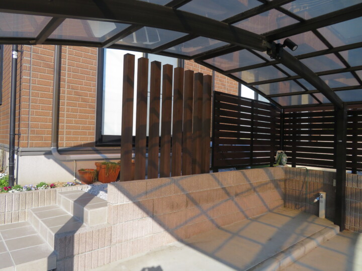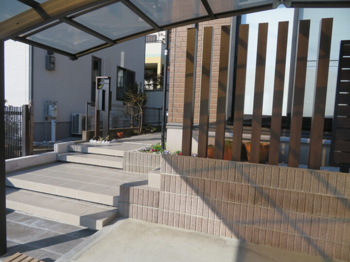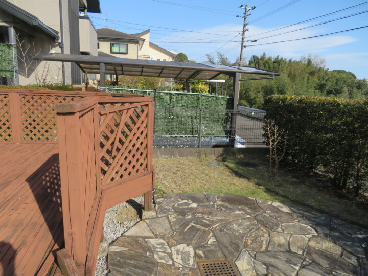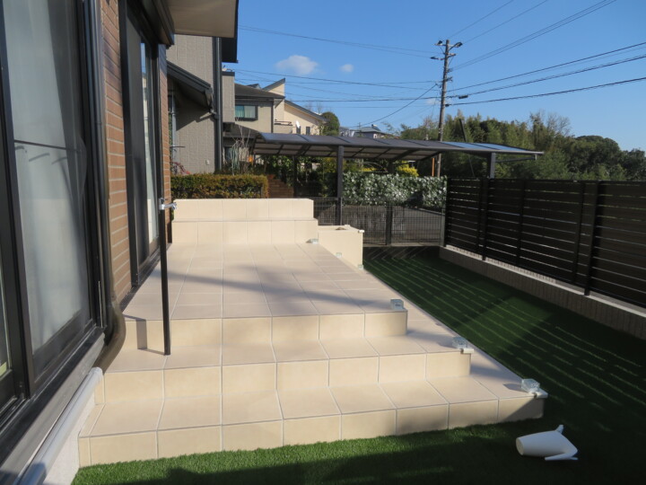お庭には木製デッキがありましたが、痛んでいましたのでノーメンテのタイルテラスのご提案を致しました