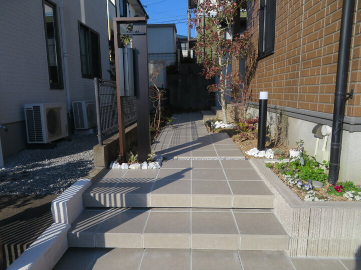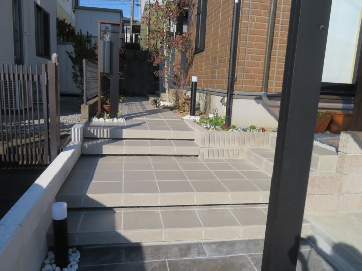 今まで暗かったアプローチには、ポールライトで足元を安全に照らします