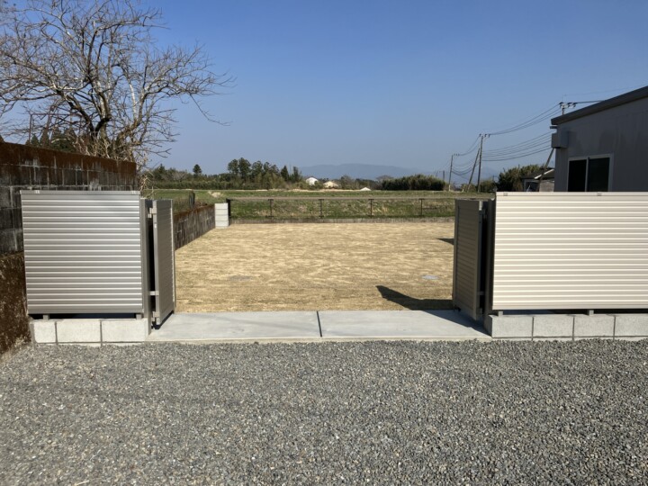 ガレージ横へは中庭に通じる門扉とフェンスを設置。