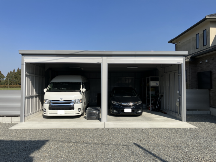 ヨド物置の2台用ガレージで高さがジャンボサイズと一番背の高いタイプ。