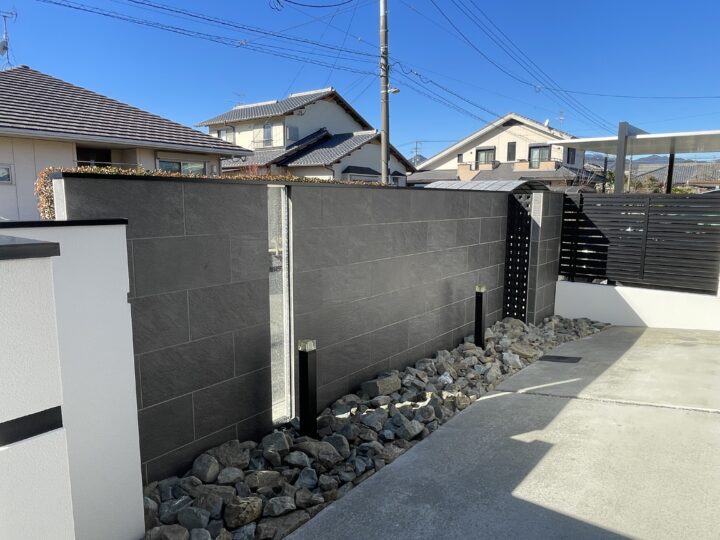 新築時に玄関周りと駐車場を工事させていただき、その後Gルーフ、そして今回道路面のPX壁を