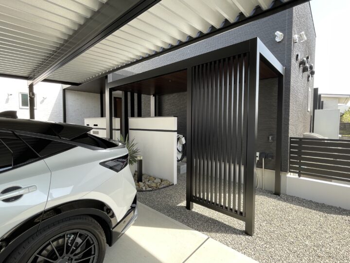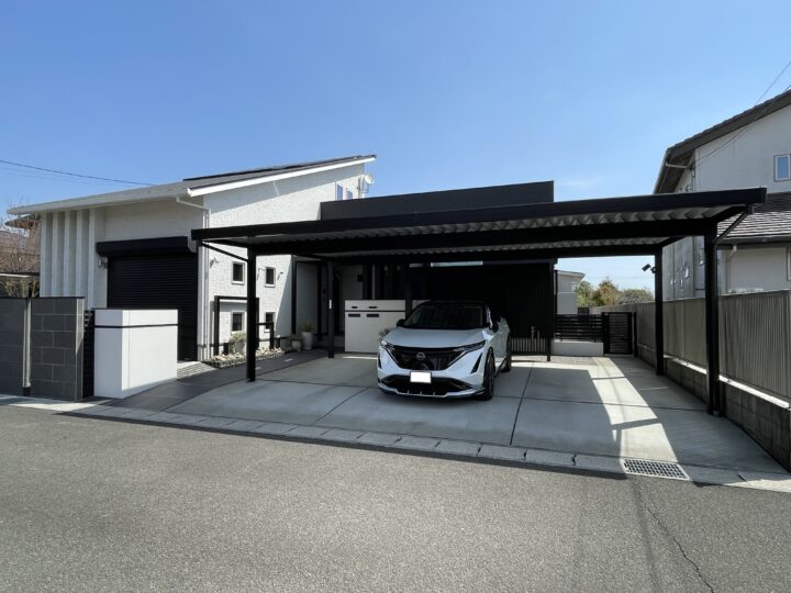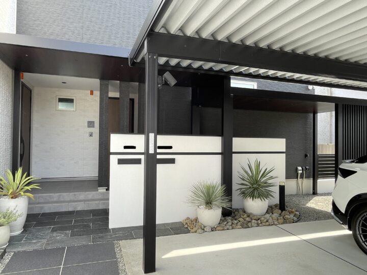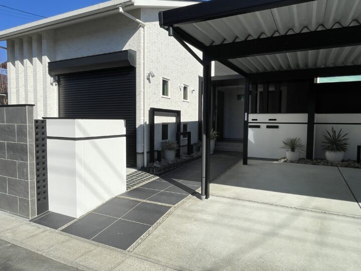 白と黒を基調とした、あたかも最初からこのまま出来ていたかのような外構ができました。