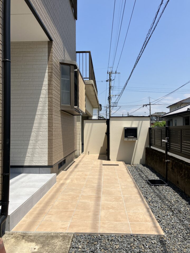 玄関までの通路はアプローチ側と普段使い用で2カ所設けました。