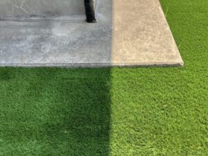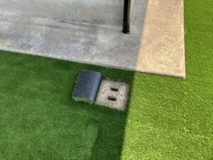 人工芝を一部カットしてメンテナンスができるように一工夫。