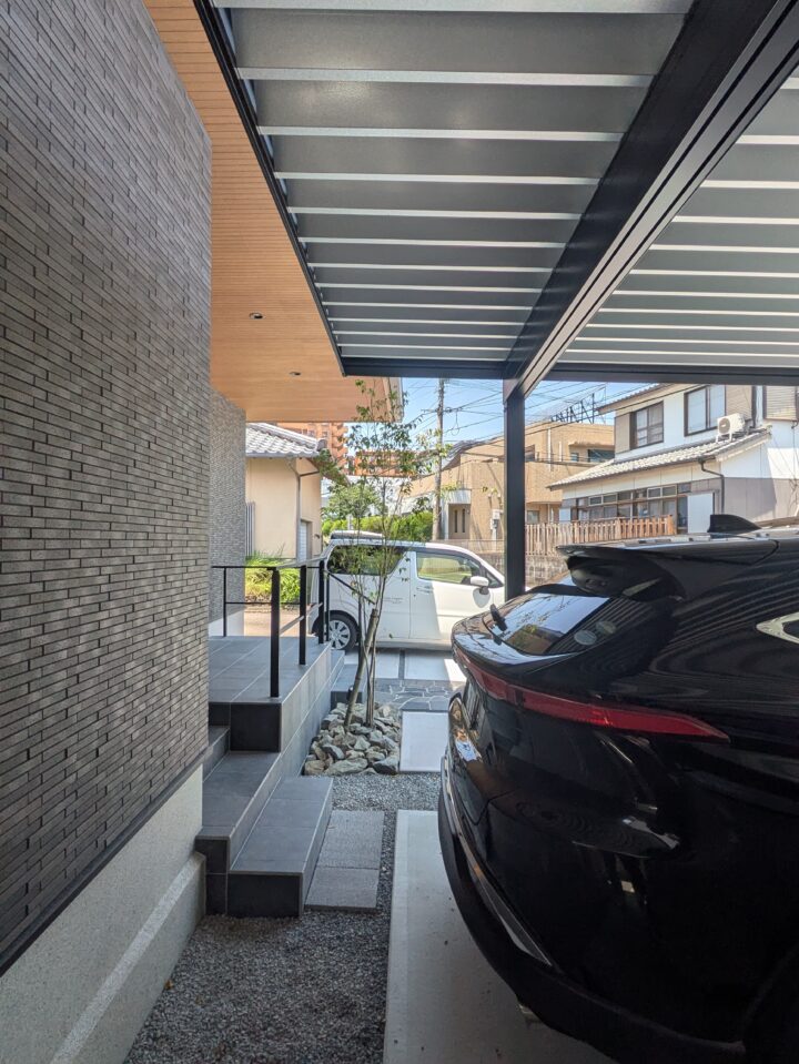 カーポート屋根を建物軒下に入れ込みましたので、雨に濡れずに行き来出来ます。