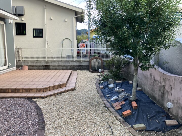 シラカシも撤去して目隠しフェンスを施工していきます。