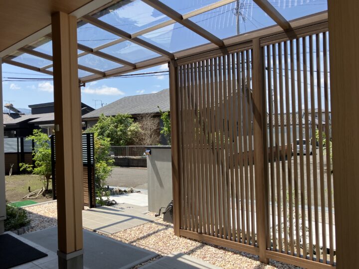現在のお困りごとも目隠し兼用の屋根をLIXILのプラスGで解消。